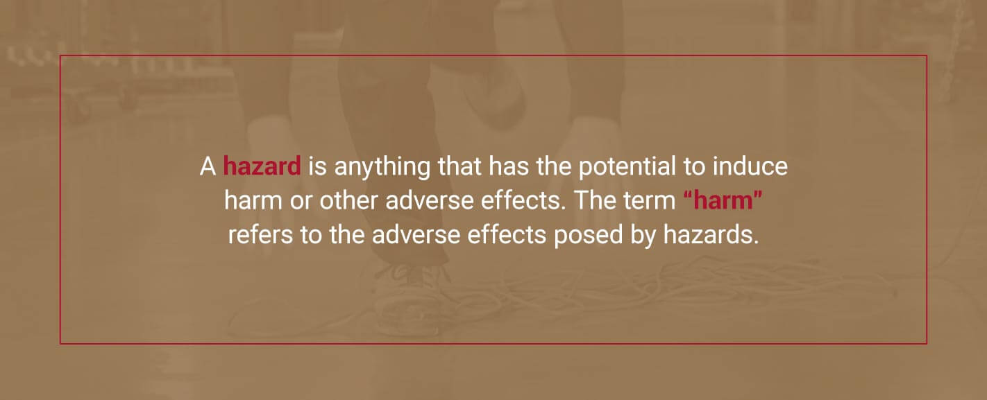 It’s important to separate the word “harm” from “hazard,” in both the context of the workplace as well as in general. It can be easy to lump these two words together, but in fact, they are separate concepts with distinct definitions. Knowing the difference between a hazard versus harm will help you better prepare to prevent workplace hazards and reduce the risk of harm to yourself and your workers.