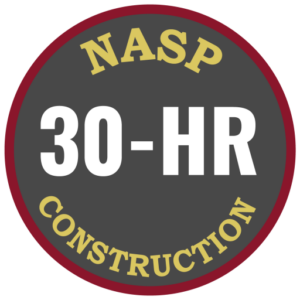 Students must receive additional training, as required by OSHA standards, on specific hazards of the job in addition to this training. Upon successful completion of the course, participants will receive a NASP 30-Hour Construction certificate and wallet card.